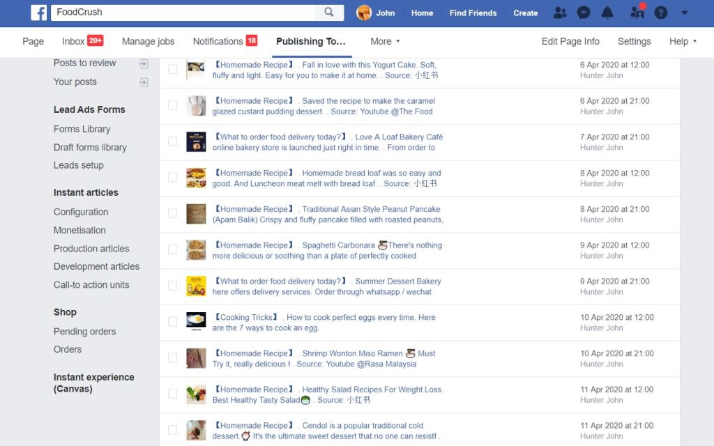 Work from Home- Make the Facebook schedule post for one week. Communicate with the restaurant through messenger to do the free advertising for the restaurant. Find the suitable videos and downloaded. Imagine and create a suitable Facebook schedule post. Find the relevant photos from google and edit it. Survey and make some research from internet. Search and select the best photos to use. Using the suitable fonts in the design. Sent to the marketing manager for approval. Accept by him. Add captions for all the post. Then, make Instagram post. Updated the latest Covid-19 news.