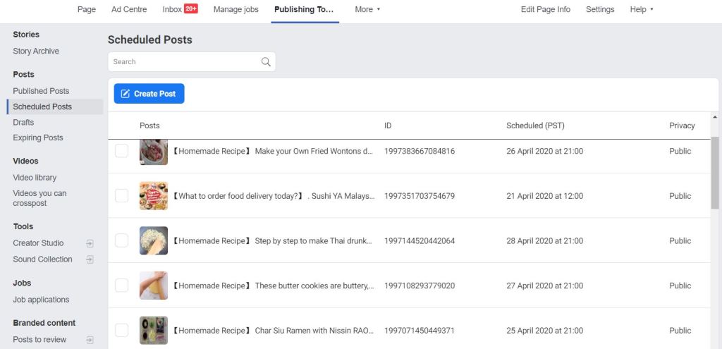 Make the schedule Foodcrush Facebook post.