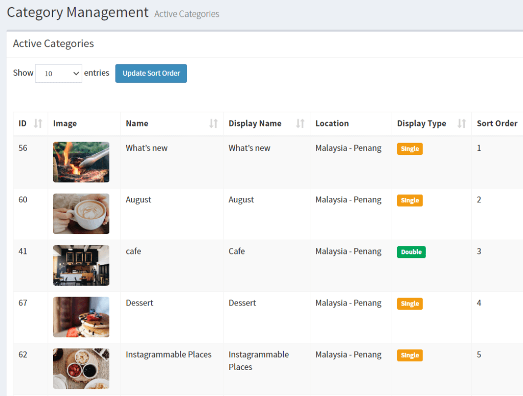 Update the category management for Foodcrush website